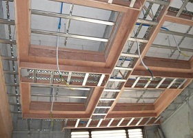 ● 吊頂主筋采用35mm*55nn木龍骨,間距為800mm-1000mm,100mm*8mm鋼膨脹固定