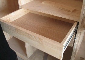 ● 抽屜高度120mm-140mm,木工板制作框架,底板采用保麗板,碼釘固定。橫面木工板切面應(yīng)用膩子上油
