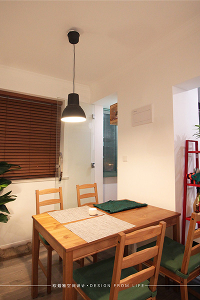 房間里的整個(gè)家居是以宜家裝修風(fēng)格為主,因?yàn)槭切粜?,寸土寸金的房子,設(shè)計(jì)師薛剛非常合理利用了每一個(gè)空間,即可以起到容納的作用,又不會(huì)讓整個(gè)房間給人的視覺感覺太擁擠。清新的木質(zhì)家具與布藝家具的結(jié)合,搭配幾盆綠色植物,不僅可以凈化空氣,吸收甲醛,而且使整個(gè)房間呈現(xiàn)出一種優(yōu)雅,寧靜,溫馨的感覺。