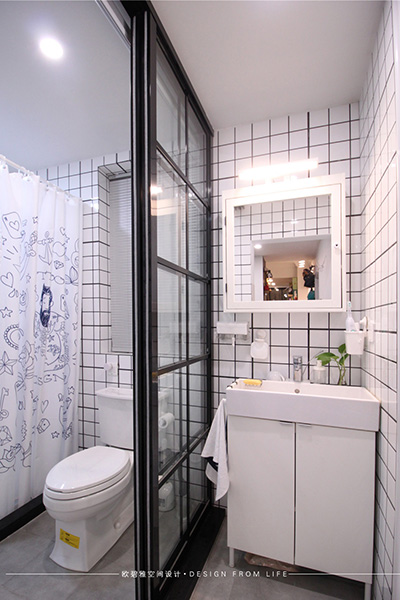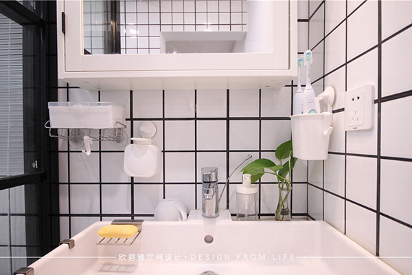 白色瓷磚之間使用黑色縫隙填補(bǔ)是現(xiàn)代而永恒的墻面主題。黑白配給人一種空間變換的美感,一種無限延伸的空間視覺。
